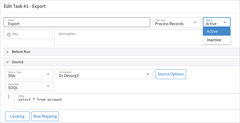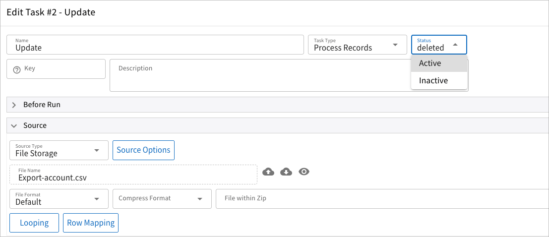 Add/Edit dialog. Change the status of the Task by selecting Active