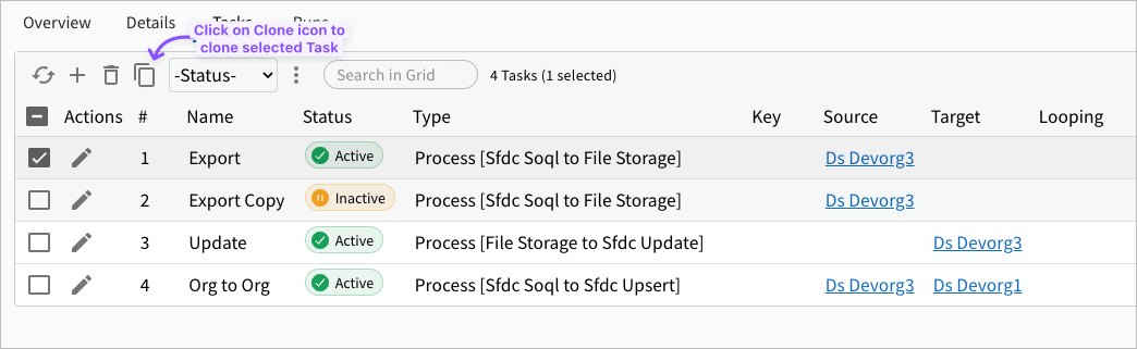 to copy tasks to the target Job. Tasks will be appended to the end of the Tasks list in the target Job with status set
