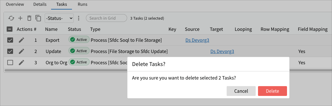 Copy Tasks is used to copy one or more Tasks from the current Job to another Job. To copy Tasks, first select one or