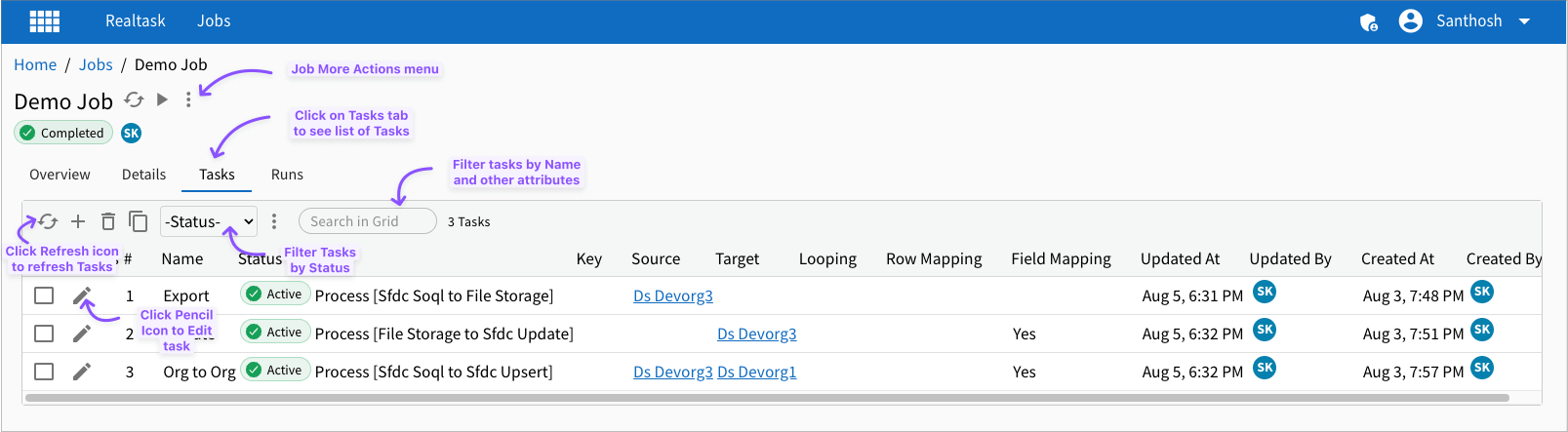 Tasks are the workhorse of a Job which does all the actual work. To manage Tasks goto the Job page whose tasks you want