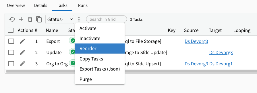 tab. It should display all Tasks in the Job in the specified order of Execution.