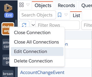 Each connection is shown as a tile in the sidebar. If you don't see the connection you're looking for, check that it has been correctly added and that you're looking for the right name.