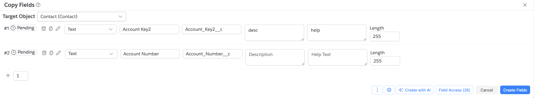 Create Fieldsdialog in copy mode - pre-fills field definitions from the selected source fields
