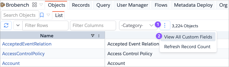 - This feature lists custom fields for some reason are not exposed as part of the Sobject's Describe call hence when you click on such Sobject, it may not show the details of that Sobject.