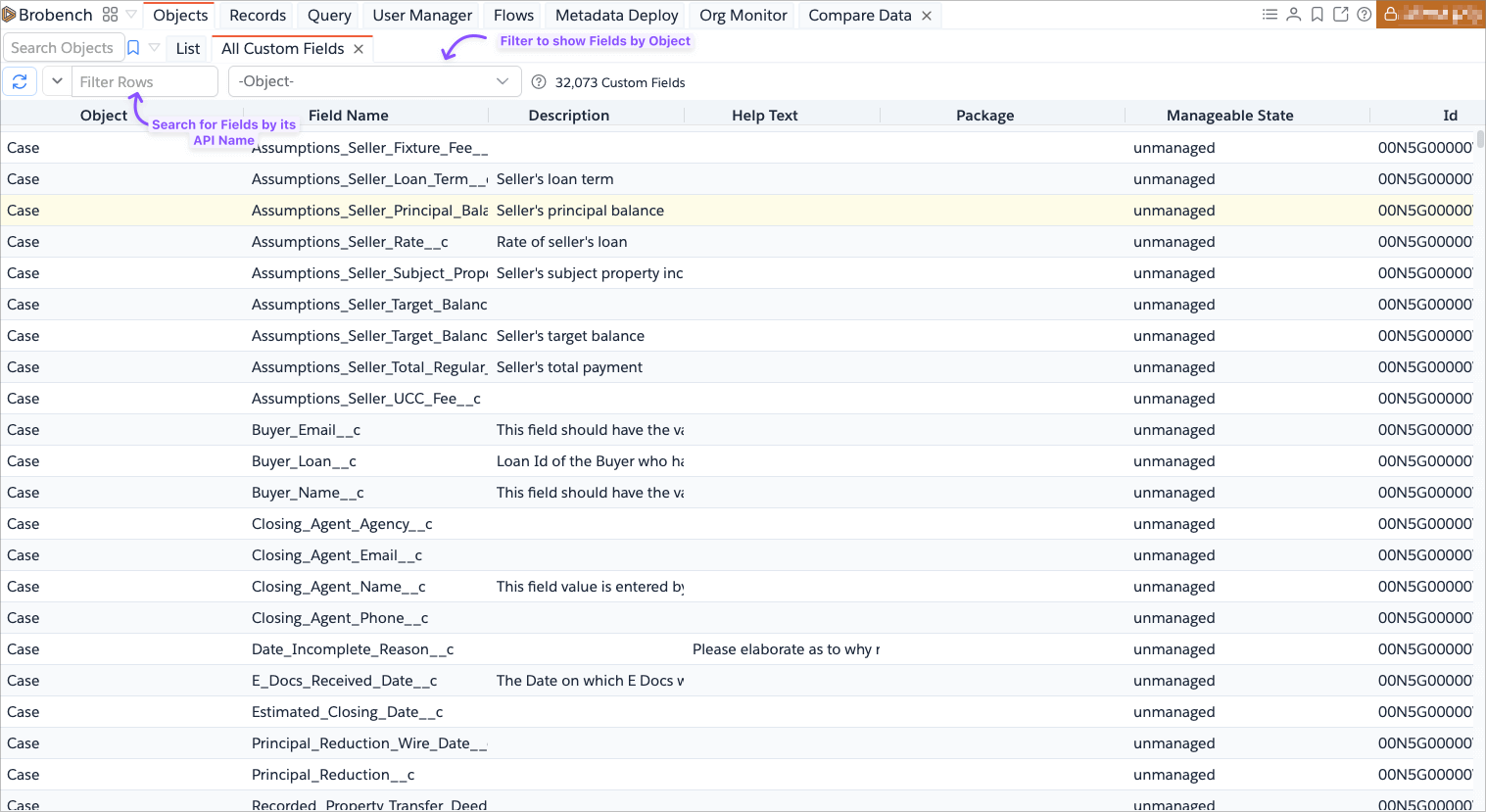 This feature allows you to list all custom field names in your Org, including the ones installed by Managed Packages. It will only list the name of the fields, and if you want to see more details, you can view them in Sobject Details page.