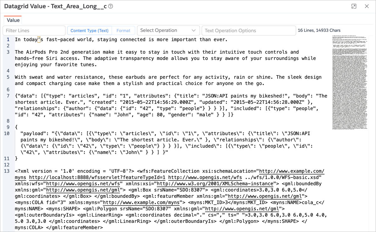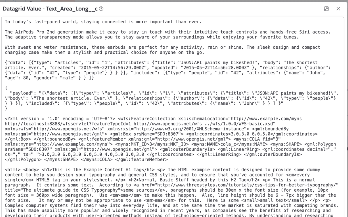 When querying Text Area fields, viewing the full content in a datagrid cell can be difficult due to limited