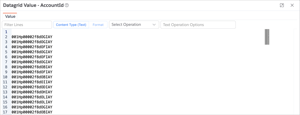 - Right-click → Grid Actions → View Values as Single String.
