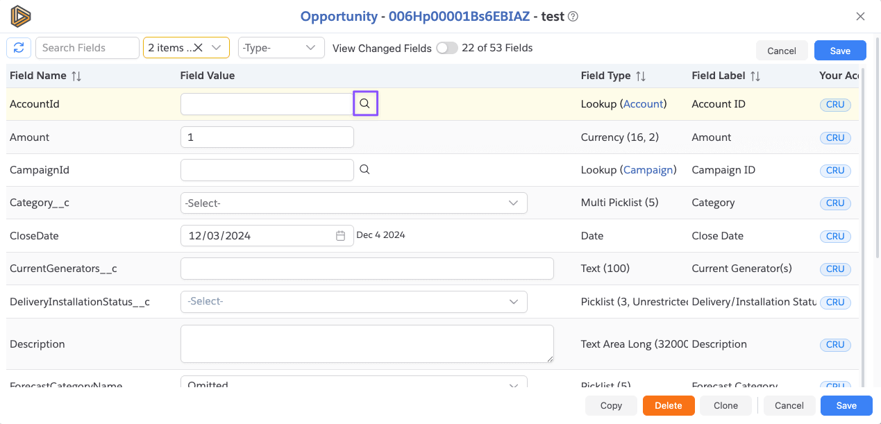 Once you are done with setting new values, click on the Save as Clone button to save the new record. If save is