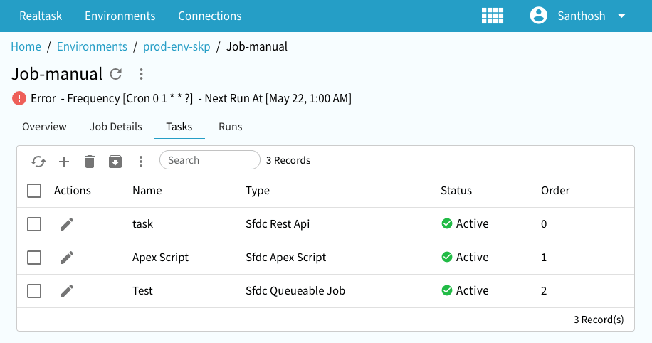 To view list of tasks in a Job, goto Job page and select Tasks tab.